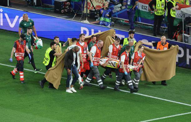 第68分钟,匈牙利任意球开入禁区,门将出击与沃尔高相撞,沃尔高长时间昏倒在地,医疗组进场紧急治疗,沃尔高后被担架送离球场,马丁·亚当替补上场。VAR复核后未判罚点球,现场匈牙利球迷嘘声四起。