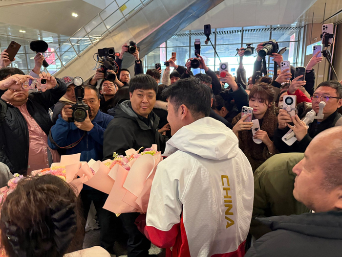 中国体育APP-速滑冠军宁忠岩载誉返乡,家乡民众热情接机|速度滑冰|冬奥会|米兰冬奥会|AC米兰|黑龙江_新浪体育_新浪新闻