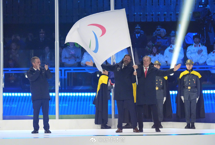会旗交接环节,国际残奥委会会旗缓缓降下,由米兰市市长萨拉和科尔蒂纳丹佩佐市市长洛伦齐交给国际残奥委会主席安德鲁·帕森斯,再由帕森斯交给2030年冬残奥会举办地法国普罗旺斯-阿尔卑斯-蓝色海岸大区和奥弗涅-罗讷-阿尔卑斯大区代表。